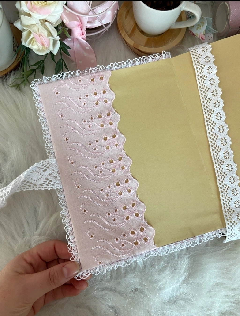 A bíblia é bordada a mão com a inicial do seu nome. Possui bolsinho de bordado inglês, marca página de renda com pingente e velluns de novo e antigo testamento.